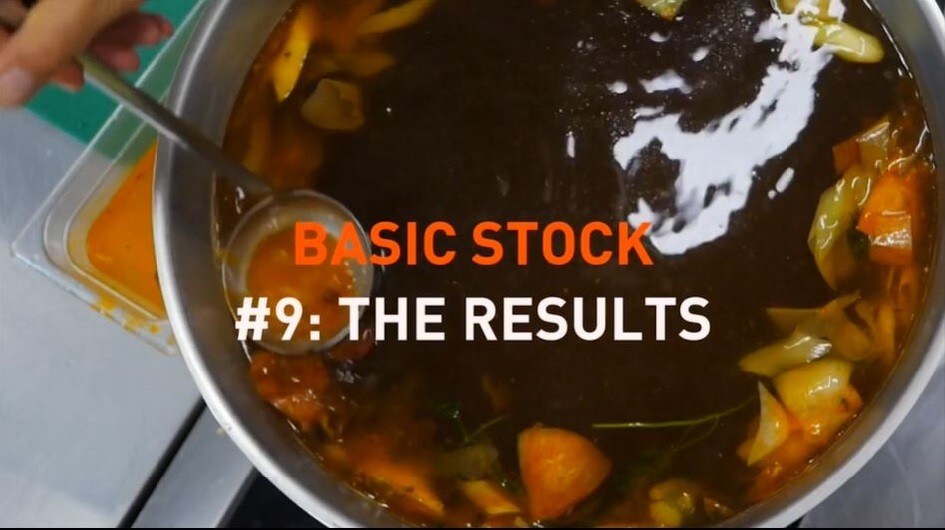 Once all stocks are cooked, Chef Jean strains them to show us the differences in color.
