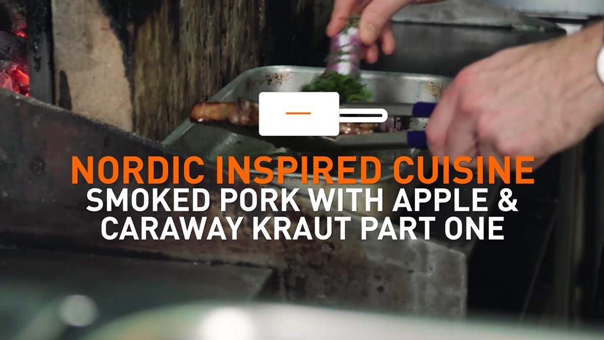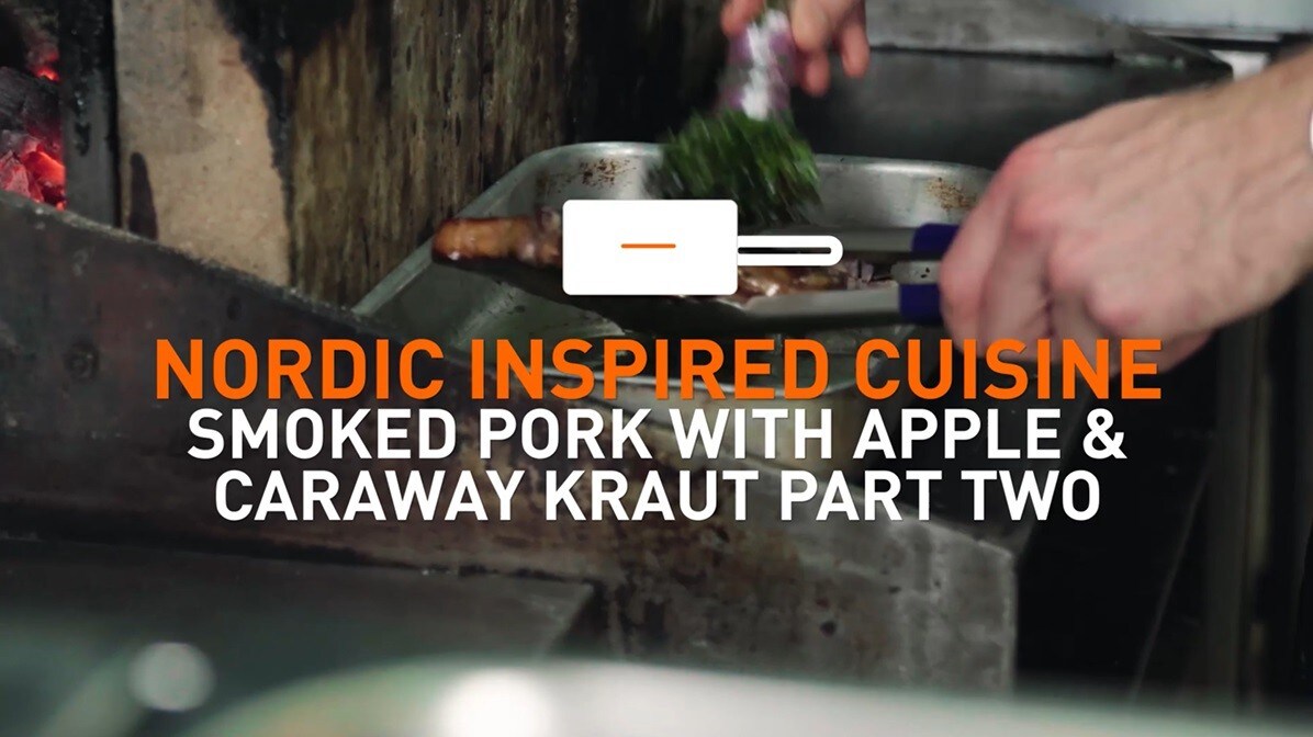 Dish two begins - smoked pork with apple and caraway kraut. Here, Chef Young will coach you through a unique brining process to season and moisten the pork before vacuum-bagging, water bathing and smoking it. Nail the techniques, methods and smokehouse secrets.