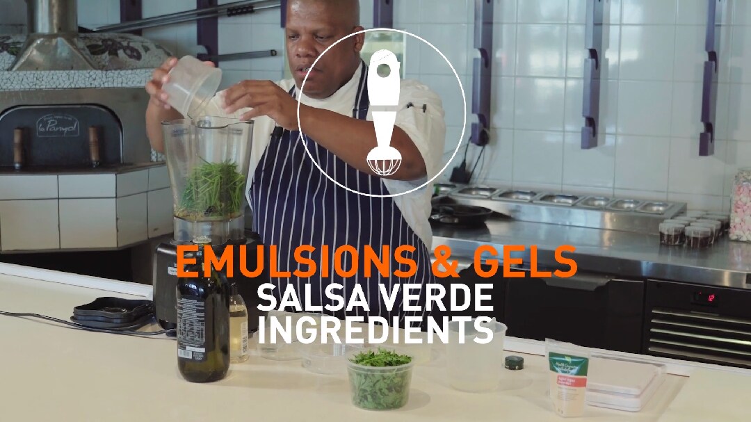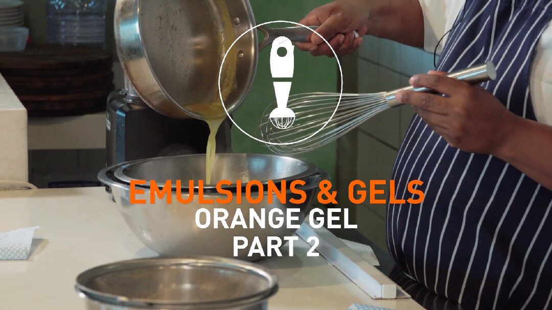 Using agar agar, orange juice, vanilla paste and simple syrup, Chef Duiker begins the gel orange. Learn to create the base for the citrus emulsion and move onto part 2 to complete.